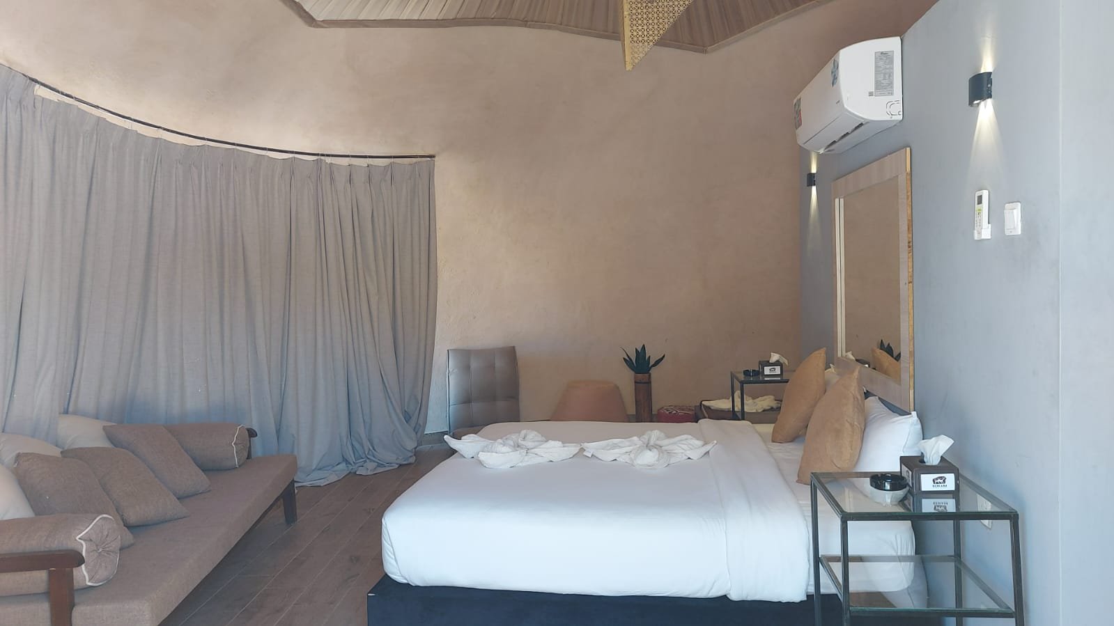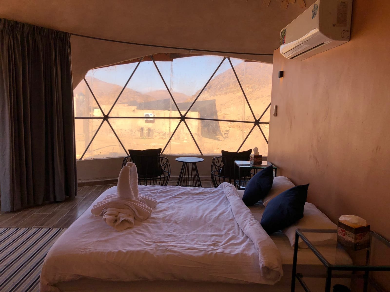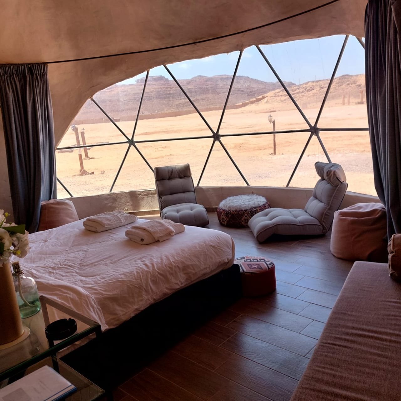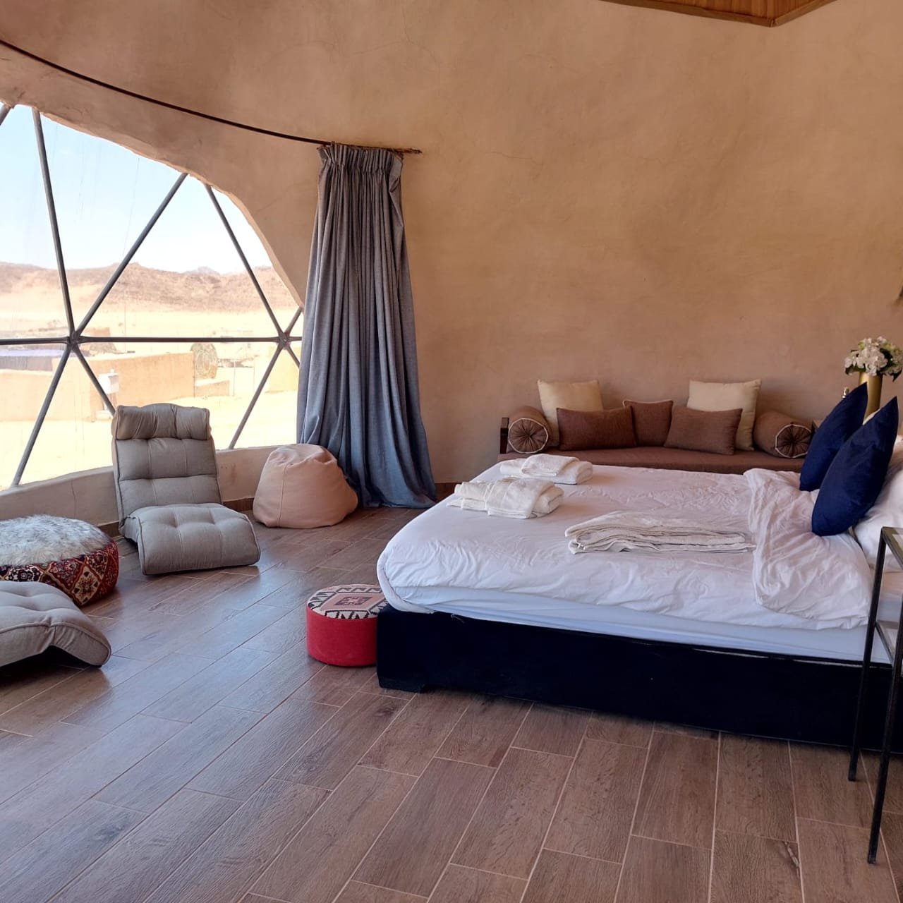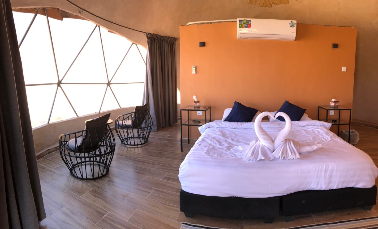 Wake up to a 180° view of Wadi Rum’s desert beauty. Each dome is built with concrete and bricks for top-notch insulation—keeping you comfortable in any weather. With enough space for up to four guests (sofa beds available), these unique domes offer a stylish, cozy escape under Jordan’s starry skies. Perfect for couples, families, or groups seeking a one-of-a-kind desert experience.